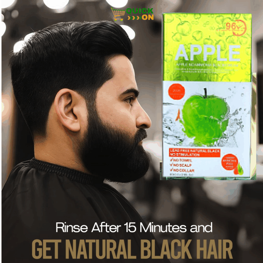 Transform your look naturally with Apple Hair Color, the best ammonia-free hair dye in Pakistan trusted by salons and home users alike. Specially designed to deliver 100% grey coverage and rich, salon-quality shades, Apple Hair Color offers a gentle, damage-free colouring experience for all hair types — including thick, coarse Pakistani hair. This premium formula is infused with natural apple extracts and essential conditioning agents that not only give you vibrant, fade-resistant colour but also nourish and protect your hair from root to tip. The result? Soft, silky, shiny hair that feels as good as it looks. Whether you’re covering stubborn greys, refreshing your shade, or trying a bold new look, Apple Hair Color makes it possible — without the harsh chemicals found in ordinary hair dyes. Infused with natural apple extracts and essential conditioning agents, Apple Hair Color not only adds rich color but also nourishes your hair from root to tip — leaving it soft, shiny, and full of life. Whether you’re covering greys or changing your style, this easy-to-use home hair color delivers long-lasting results without the harsh chemicals found in ordinary hair dyes.