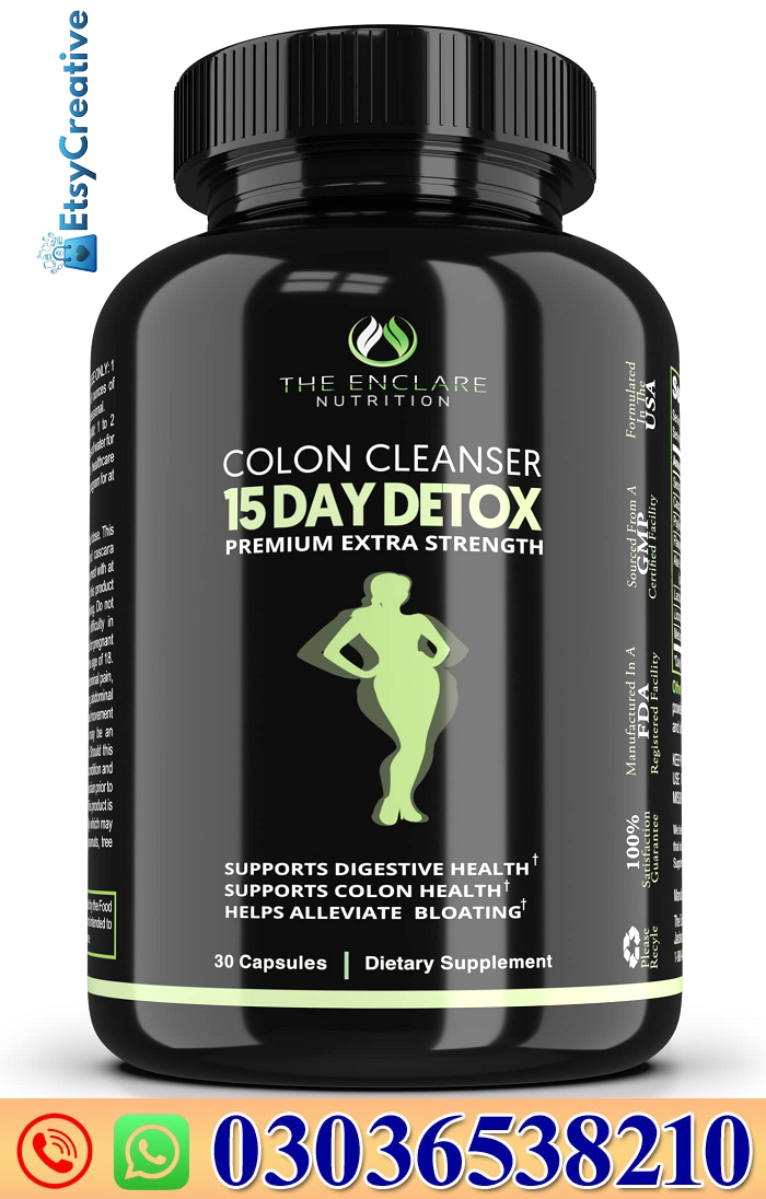 Colon Cleanser 15 Day Detox Capsule in Pakistan is a natural and effective dietary supplement designed to support digestive health and cleanse the colon. Available at Etsycreative.com? this detox capsule helps remove toxins, promotes regular bowel movements, and improves overall digestive wellness. Perfect for anyone looking to increase gut health and support weight management naturally.