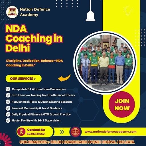 Looking for the best NDA coaching in Delhi to turn your defence dream into reality? Nation Defence Academy gives comprehensive NDA training with master staff, disciplined schedules, and result-oriented preparation. Our coaching covers NDA written exam syllabus, SSB interview training, physical fitness, and personality development beneath one organized program. We offer uncommon NDA foundation courses after 10th along with coordinates schooling choices for Classes 11 and 12. Customary mock tests, execution investigation, and individual mentoring offer assistance understudies remain ahead of the competition. Connect Nation Defence Academy and get ready with confidence, discipline, and commitment for a effective career in the Indian Armed Forces.