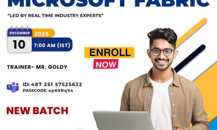 This advanced training is designed to help you master unified data engineering, real-time analytics, and business intelligence using Microsoft’s latest Fabric platform. Start Date:10/12/2025 @7:00AM IST Trainer: Mr. Goldy. Mode: Online Training