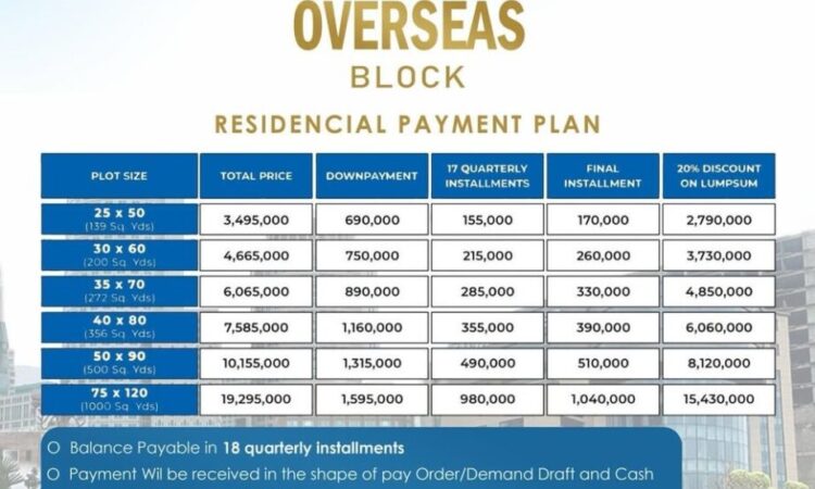 Faisal Town Overseas Enclave 5, 8, 10 marla and 1 kanal residential plots in Faisal Town Overseas Block on 4.5 year easy installments.