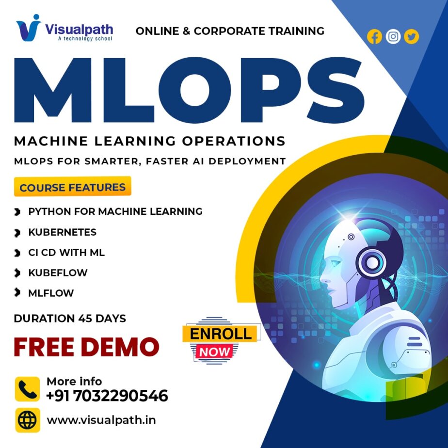 Join Visualpath expert-led MLOps Training and master end-to-end Machine Learning Operations Training with real-time projects, CI/CD, and cloud tools. Available online and globally, including India, USA, UK, Canada, and Dubai. Call +91-7032290546 to book your free demo session today!