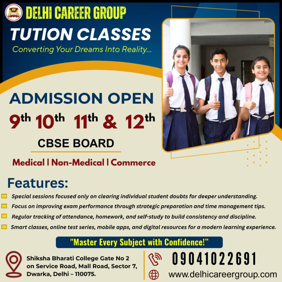 Join Delhi Career Group for expert-led Maths Tuition for Class 12 in Dwarka, Delhi. Our experienced faculty simplifies complex mathematical concepts through clear explanations, problem-solving techniques, and step-by-step guidance. We help students strengthen their fundamentals, improve accuracy, and score high in board as well as competitive exams.
