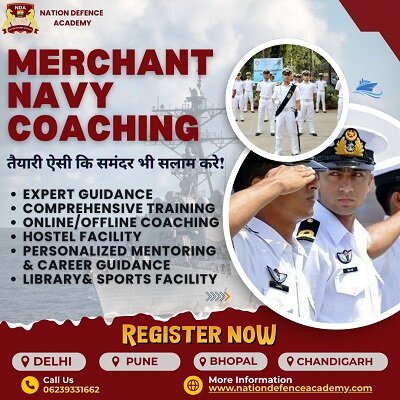 Contact us:Nation Defence AcademyOur branches: Delhi, Pune, Bhopal, ChandigarhVisit:https://merchant-navy.nationdefenceacademy.com/merchant-navy-coaching-delhi.php