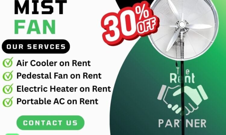 Mist Fan on Rent in India offers affordable outdoor cooling solutions with Mist Fan on Rent, Pedestal Fan on Rent, Portable AC on Rent, Air Cooler on Rent, and Electric Heater Rental Service for events, warehouses, construction sites, and spaces.