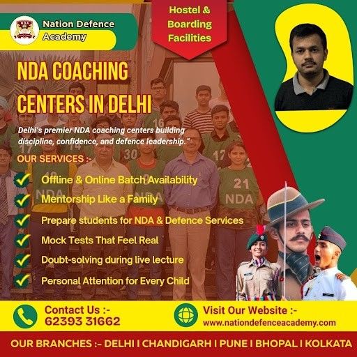 If you are looking for reliable NDA Coaching Centers in Delhi, Nation Defence Academy offers focused and result-oriented NDA preparation for yearning defence officers. Our coaching is planned to fortify core concepts in Mathematics, English, and General Knowledge agreeing to the most recent NDA exam syllabus and pattern. With experienced workforce, disciplined classroom training, customary mock tests, and ceaseless execution assessment, understudies pick up confidence and exam status. We emphasize organized learning, time management, and person direction to offer assistance competitors make strides reliably. Whether you are starting your NDA journey or refining your preparation, our coaching center gives the right environment and mentorship. Take a certain step toward a prestigious career in the Indian Armed Forces.