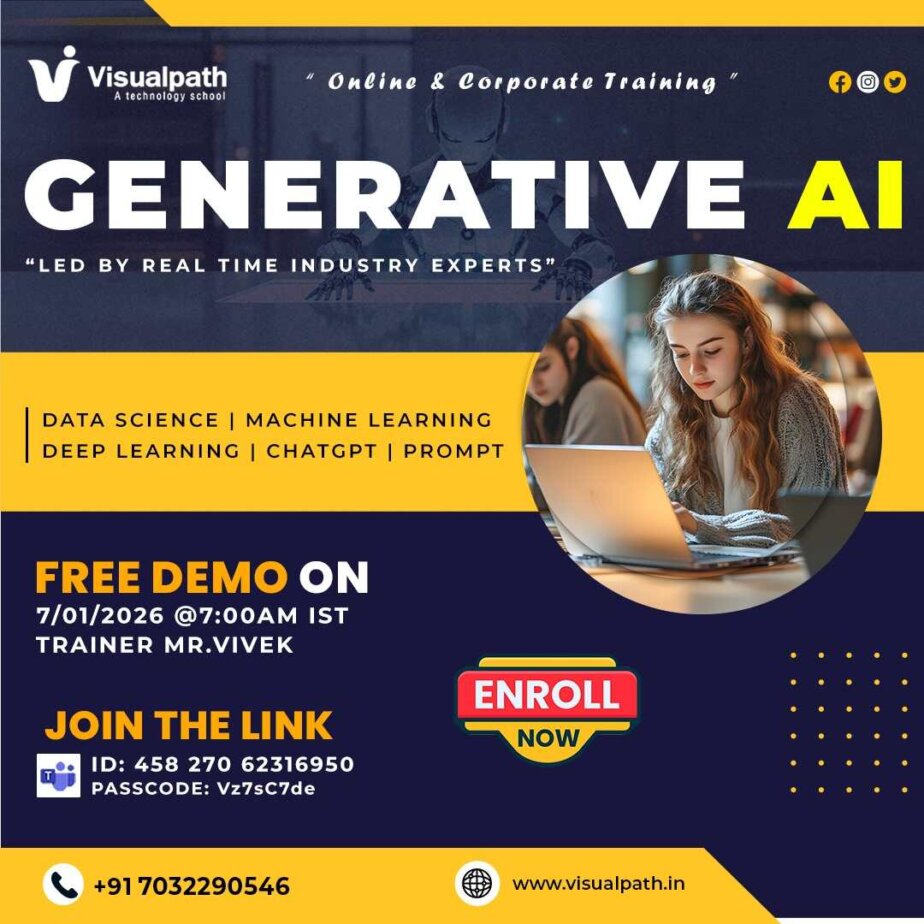 WhatsApp: https://wa.me/c/917032290546Course Info: https://www.visualpath.in/generative-ai-course-online-training.html