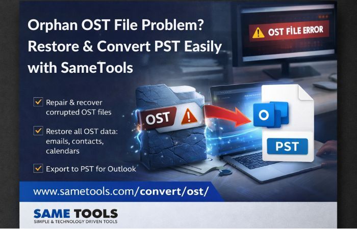SameTools to Convert OST to PST provides an ideal solution to restore orphan OST files and convert them into PST format easily. Orphan OST files are created when the connection with the Exchange server is lost, making mailbox data inaccessible. This expert software helps recover this data and convert OST into PST format so users can access emails in Outlook without any issues. This program exports emails along with attachments, contacts, calendars & other mailbox components while preserving the original formatting and metadata. It also maintains the folder hierarchy, ensuring that data is organized after conversion. It supports large and corrupted OST files and ensures a smooth and secure conversion process without any data loss. Its simple interface allows both technical and non-technical users to complete the process without difficulty. Download a free demo version to preview recovered data and understand the tool before purchasing.