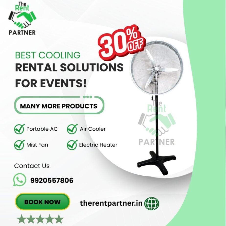 Pedestal Fan for Rent – Affordable Cooling Solutions | TheRentPartner.in provides comfort with Mist Fan on Rent, Air Cooler on Rent, Silent Cooler, Mini Jumbo Cooler, Portable AC on Rent, pedestal fan on rent near me and Standing AC on Rent for events and homes.
