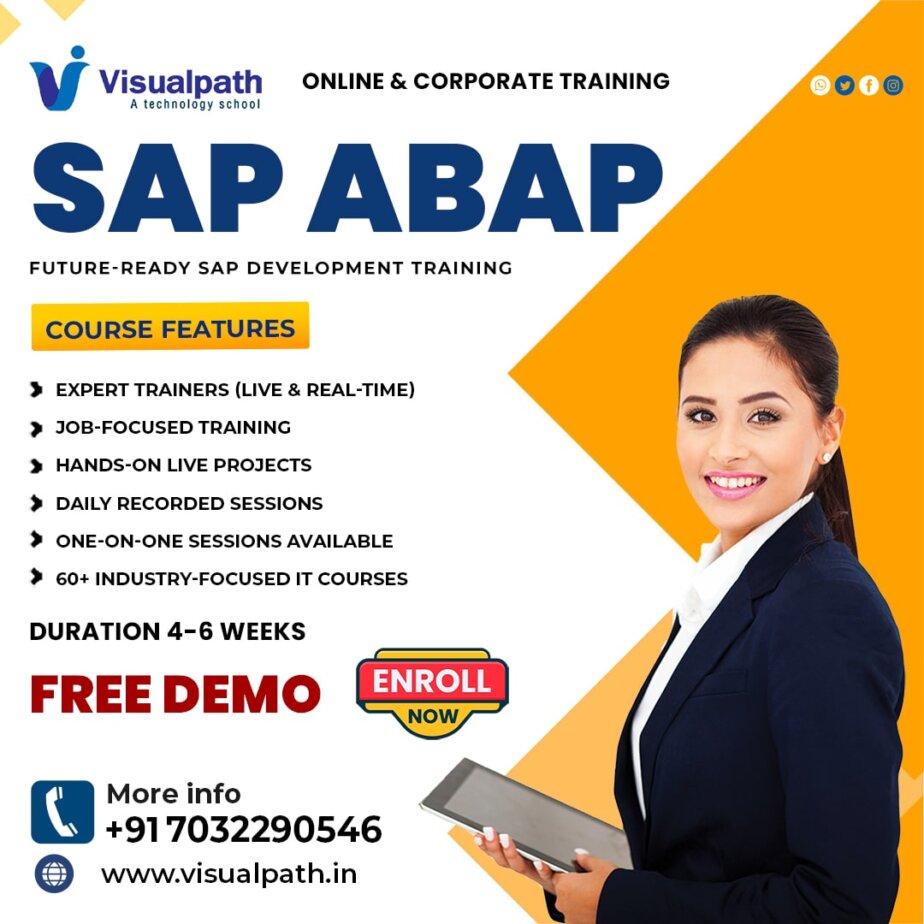 Visualpath provides expert-led SAP ABAP Training to help you master advanced programming and development skills. Through our interactive SAP ABAP Online Training in Hyderabad, you’ll work on real-time projects and practical scenarios with guidance from industry professionals. Training is available globally, including in India, the USA, the UK, Canada, and Dubai. Call +91-7032290546 for a free demo session!