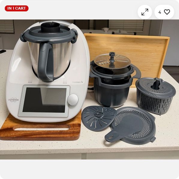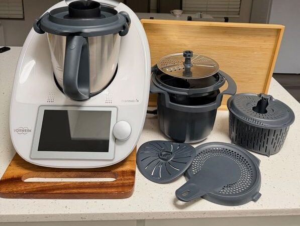 Thermomix TM6 Gıda İşlemcisi Komple Seti, Orijinal Aksesuarlarıyla Birlikte. Kullanılmış, ancak mükemmel durumda. USPS Ground Advantage ile gönderilecektir.