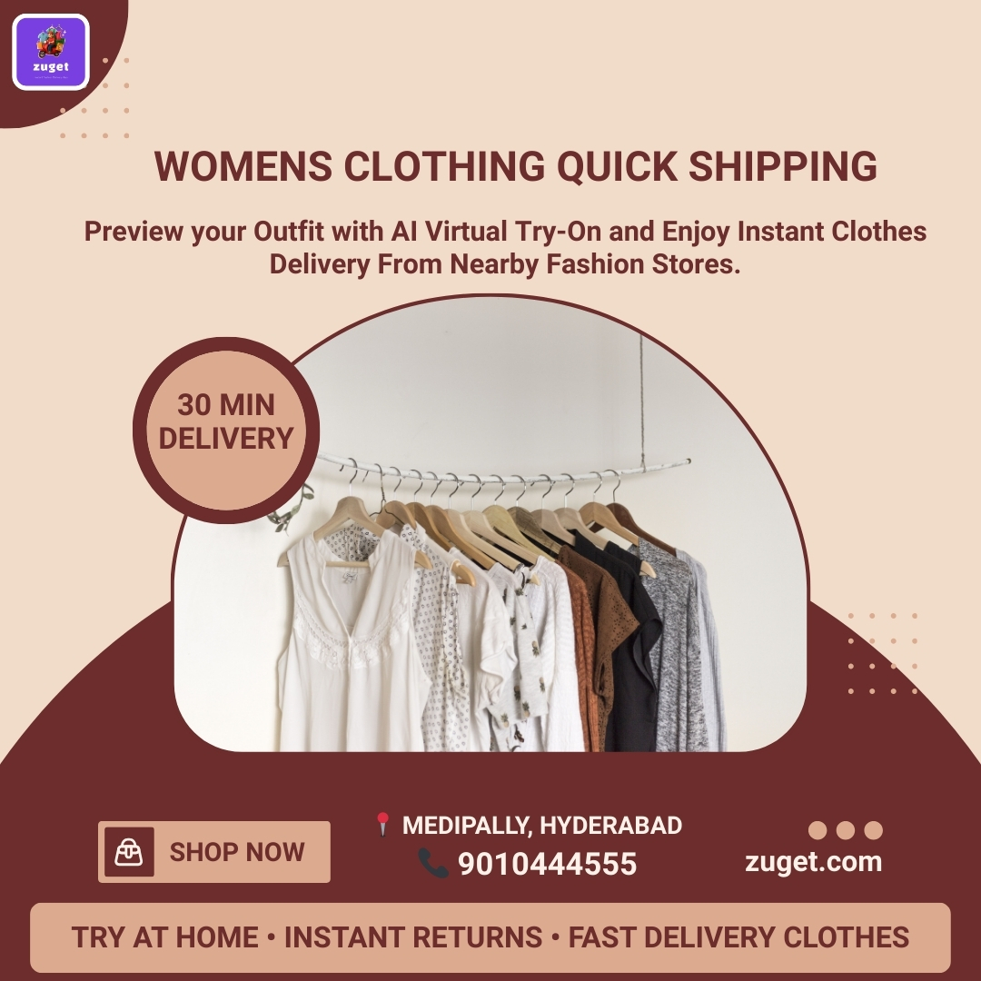 Womens Clothing Quick Shipping is changing how modern shoppers buy fashion online, and Zuget is leading this transformation with its innovative hyperlocal fashion marketplace. If you are looking for Fast Shipping Dresses Online, Zuget offers a seamless and convenient shopping experience designed for today’s fast-paced lifestyle. Using advanced AI Virtual Try-On (VTO) technology, customers can create a digital body profile and see how dresses and outfits fit before purchasing, eliminating size confusion. Zuget connects shoppers with premium fashion stores located within 5–7 km, enabling 30-minute doorstep delivery for urgent fashion needs. Customers can also enjoy a Try-at-Home Experience, real-time tracking, and instant returns without complicated processes. With these features, Zuget provides reliable Fast Delivery Clothes, making fashion shopping quicker, smarter, and more convenient than traditional online shopping.